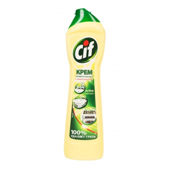 Чистящий крем Cif Актив Лимон с микрокристаллами удаляет 100% грязи на кухне и в ванной, оставляя поверхности 100% сияющими и гладкими.