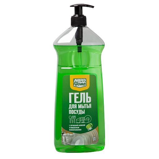 Гель для мытья посуды Lime ABRO Home. Всего одна капля средства создает обильную пену, способную безупречно чисто вымыть посуду. Средство эффективно удаляет жир и остатки пищи с поверхности посуды как в горячей, так и в холодной воде. Полностью смывается водой, бережно относится к коже рук. 1000 мл