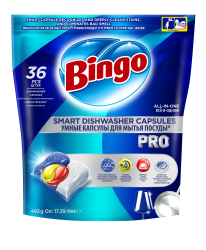 BingoSmart pro капсулы для посудомоечной машины 36 шт. Каждая капсула содержит четыре активных компонента на основе геля и порошка, справляться даже с самыми сложными загрязнениями. Белый порошок на основе пищевой соды обеспечивает глубокое очищение. Не содержит фосфатов, что делает капсулы экологичными и безопасными. Подходят для использования в любых ПММ