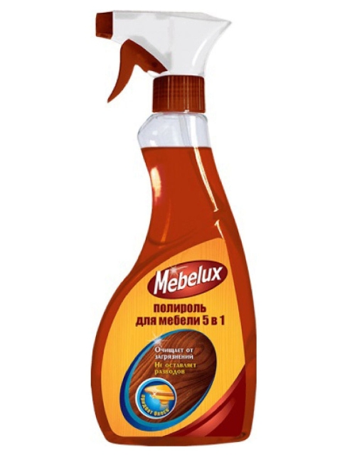 Полироль MEBELUX 5 в 1 с легкостью удаляет следы пальцев и грязные пятна с поверхности. Возвращает естественную красоту мебели благодаря содержащемуся в составе натуральному карнаубскому воску. Регулярное применение продлевает срок службы мебели.