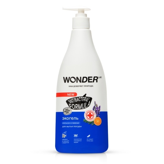 Гель для мытья посуды с антибактериальным эффектом защитит вас и вашу семью от бактерий. Средство для посуды WONDER LAB полностью смывается водой в считанные секунды, не оставляя пленки. Формула на основе натурального антибактериального комплекса с экстрактами эфирных масел бережно относится к коже рук, не сушит её и эффективно очищает посуду от бактерий. Средство образует пену, которая отлично удаляет жир и остатки пищи, не оставляя запаха и разводов.