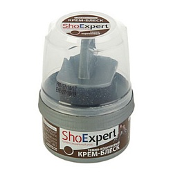 Крем-блеск ShoExpert для обуви в банке с губкой темно-коричневый 60мл
