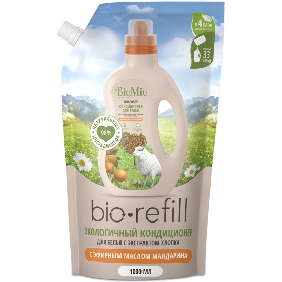 Экологичный гипоаллергенный кондиционер для белья BioMio BIO-SOFT с бодрящим эфирным маслом мандарина подходит для всех видов тканей, включая шелк и шерсть. Придает особую мягкость ткани и облегчает глаженье. Подходит для стирки детского белья и одежды людей с чувствительной кожей, так как не содержит фосфатов, агрессивных ПАВ, SLS/SLES, ПЭГ, синтетических отдушек и красителей. На 98% состоит из натуральных ингредиентов. Безопасен для септиков в домах с автономной канализацией. Благодаря концент