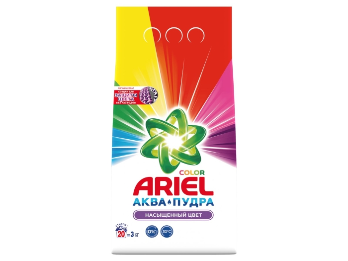 Стиральный порошок автомат Ariel Color для стиральной машины предназначен для стирки цветного и белого белья. Благодаря технологии Аквапудра, порошок для стирки Ariel Color растворяется, едва коснувшись воды, и моментально активируется: глубоко проникает в структуру волокон и удаляет сложные пятна, не давая загрязнениям въедаться. Ariel Color удаляет даже невидимые загрязнения, устраняя неприятные запахи и предотвращая изменение цвета ткани, в том числе на воротничках и манжетах.