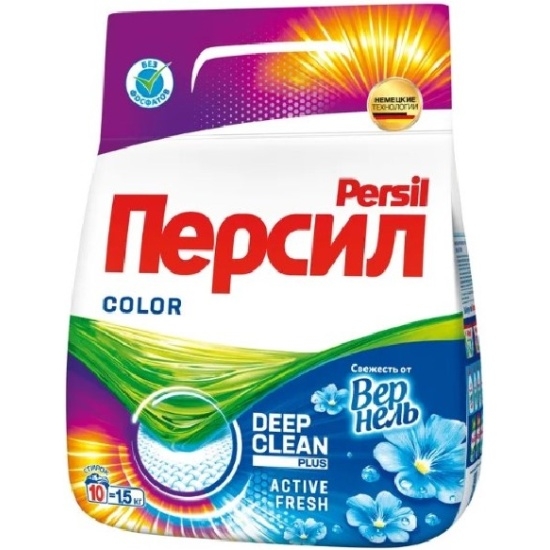Стиральный порошок Persil Color Свежесть от Vernel для цветного белья с формулой Deep Clean Technology, которая обладает уникальным сочетанием 13 активных компонентов. Стиральный порошок Persil это всё, что нужно для сияющей чистоты и яркости белья. Порошок для стирки белья Persil содержит защиту от образования известкового налета для жесткой и мягкой воды.