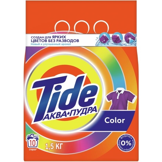 Стиральный порошок автомат Tide Color для стиральной машины предназначен для стирки цветного и белого белья. Tide Color удаляет трудновыводимые пятна и возвращает вещам кристальную чистоту с первой стирки, включая сложные зоны, такие как воротнички и манжеты. Благодаря уникальной технологии Аквапудра, порошок для стирки моментально растворяется при контакте с водой и хорошо выполаскивается.