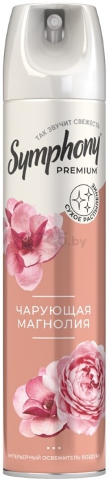 Освежитель воздуха SYMPHONY Premium Чарующая магнолия 300 мл (4600104038389) – для устранения неприятных запахов, освежения и ароматизации воздуха в жилых и бытовых помещениях, ванных и туалетных комнатах, помещениях для курения.