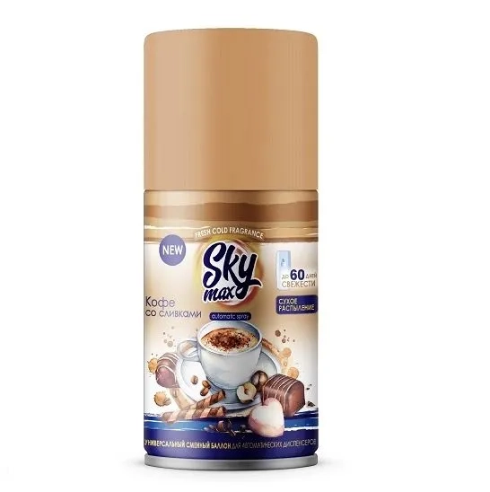 Освежители воздуха SKY MAX - это универсальные сменные баллоны для автоматических диспенсеров. Действует до 60 дней . Сухое распыление. Предназначены для постоянной ароматизации воздуха в любом помещении.
