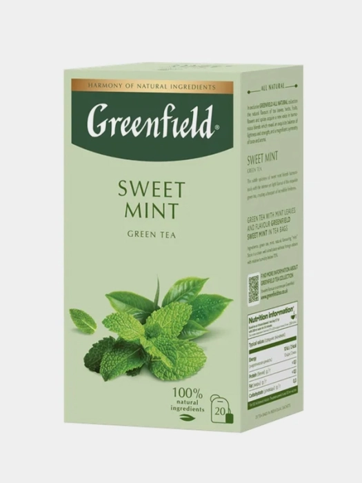 Чай Орими Greenfield All Natural-08 Sweet Mint зеленый аром 20пак*1,7гр
