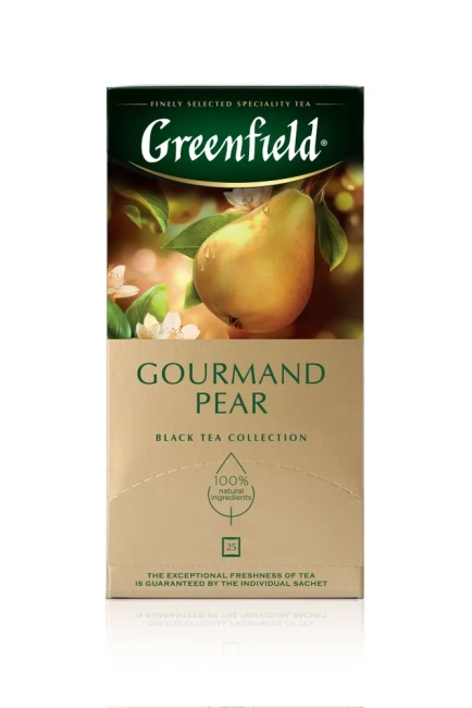 Чай черный Greenfield Gourmand Pear — это изысканный напиток, который подарит вам наслаждение и уют в каждом глотке. В упаковке содержится 25 пакетиков, каждый из которых наполнен ароматом спелой груши, что придаёт чаю уникальный и освежающий вкус. Этот черный чай идеально подходит как для утреннего пробуждения, так и для вечернего расслабления.