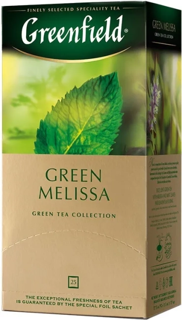Натуральная композиция из зеленого китайского чая и душистых трав — мяты и мелиссы, обладает приятным, нежным вкусом, в котором сочетается легкая терпкость зеленого чая, освежающая пряность мяты и естественный лимонный оттенок мелиссы.