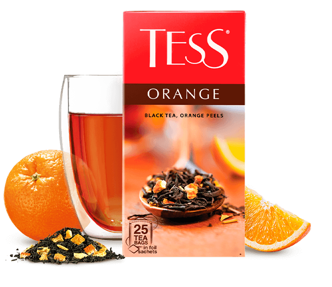 Черный чай с цедрой апельсина в пакетиках. Черный цейлонский чай великолепно сочетается с сочным вкусом спелого апельсина и тонким яблочным ароматом.