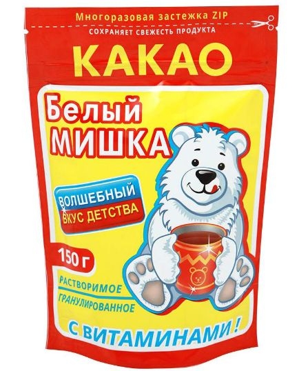 Белый Мишка какао гранулированный - натуральное какао с насыщенным шоколадным вкусом и нежным ароматом. Прекрасно подходит для завтрака, согревает и создает теплое настроение на весь день.Ощутить вкус детства, а также порадовать детей полезным напитком поможет растворимое гранулированное какао торговой марки Белый Мишка. Напиток производится из натуральных составляющих, а также включает в себя комплекс, содержащий восемь витаминов.