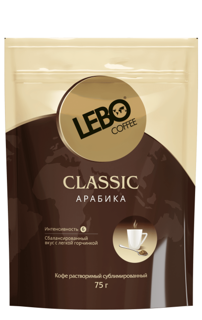 Натуральный растворимый сублимированный кофе LEBO CLASSIC очарует вас богатым вкусом с приятной горчинкой. Для создания сублимированного кофе зерна обжариваются, измельчаются и обрабатываются по особой технологии «Freeze dried», что позволяет сохранить бодрящий насыщенный вкус и незабываемый аромат классического черного кофе.