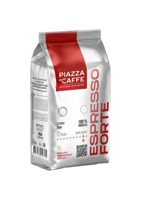 Кофе зерновой PIAZZA del CAFFE Espresso Forte плотный, густой, хорошо сбалансированный вкус с характерной горчинкой и долгим насыщенным послевкусием с выраженными нотами темного шоколада.Обжаривается при помощи технологии Thermo Two – традиционная барабанная жарка с конвекцией, что способствует равномерной прожарке и наилучшему сохранению аромата кофе.