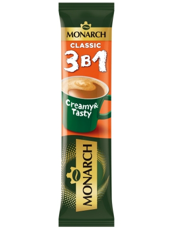 Monarch Classic 3в1 - самый любимый традиционный микс, благодаря сочетанию сбалансированного вкуса кофе, сливок и сахара. Он создан для тех, кто ищет сбалансированный кофейно-сливочный напиток.