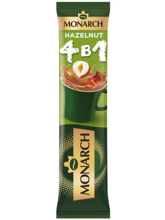 Monarch 4в1 Hazelnut - традиционный вкус сбалансированного кофейно-сливочного напитка с улучшенной рецептурой и богатым ароматом лесного ореха.