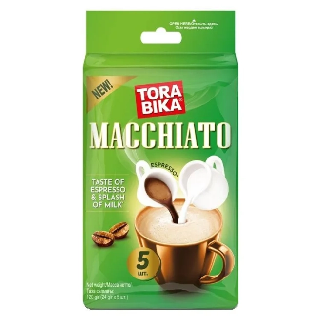 Torabika Macchiato крепкий кофе с мягким вкусом, с добавлением эспрессо и новозеландского молока, способный взбодрить и зарядить энергией на весь день. Кофейный напиток Torabika с обильной сливочной пенкой, приготовленный по итальянскому рецепту, придется по вкусу каждому ценителю капучино.