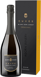 Вино игристое Агора Кюве с ЗГУ Крым Рислинг Шардоне белое п/сл 0,75л ПК