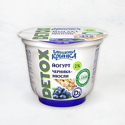 Йогурт Бабушкина крынка Греческий 2% черника-мюсли стакан 230гр