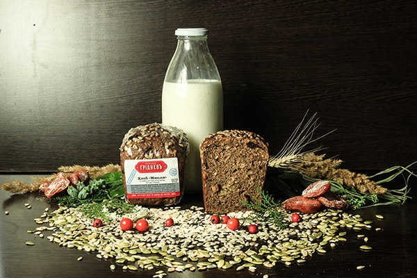 Мука пшеничная хлебопекарная первый сорт, мука ржаная хлебопекарная обдирная, закваска ржаная (мука ржаная хлебопекарная обдирная, вода питьевая), закваска пшеничная (мука пшеничная хлебопекарная первый сорт, вода питьевая), вода питьевая, курага, ядро подсолнечника, хлопья овсяные, солод ржаной ферментированный, сахар белый, виноград сушеный (изюм), чернослив сушеный, солод ржаной неферментированный, зерно пшеницы, патока рафинадная солодовая (меласса тростниковая (свекловичная), глюкозный сиро