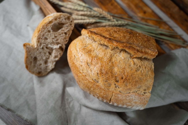 Популярный пшеничный хлеб на закваске, выпеченный на поду, с характерной золотистой корочкой и пышным мякишем. Без добавления сахара, дрожжей, консервантов и улучшителей.