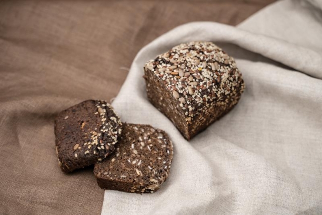 Хлеб на закваске из пророщенного зерна. Закваска придает кружевную пористость и особенную кислинку хлебу. Без добавления дрожжей. Разделывается вручную. Постный продукт. Закваска из пророщенного зерна Помогает нормализовать процесс пищеварения.