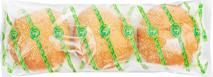 Булочки торговой марки ХЗ ЮГ РУСИ изготовлены из пшеничной муки высшего сорта. Отличаются румяной хрустящей корочкой. Сверху посыпаны белыми семенами кунжута. Предназначены для приготовления гамбургеров. В упаковке идут 3 булочки.