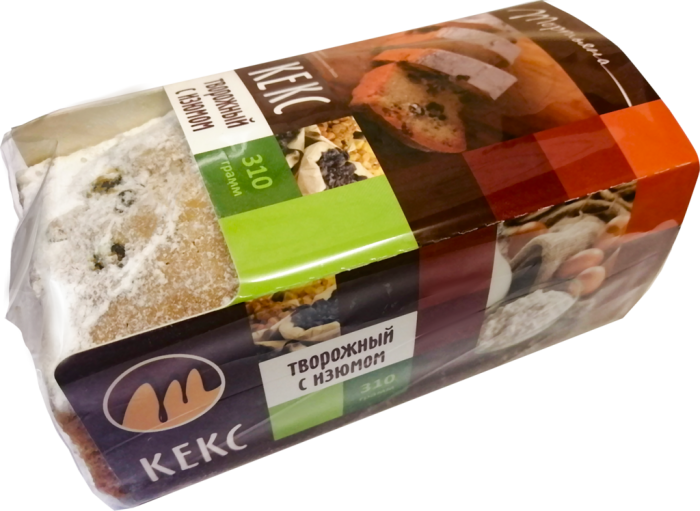 Сахар-песок, мука пшеничная хлебопекарная высшего сорта, творог с массовой долей жира 9% (молоко цельное, закваска), маргаринтвердый Столовый с молочным вкусом и ароматом (рафинированное дезодорированное подсолнечное масло в натуральном и модифицированномвиде, вода, эмульгаторы: Е471, Е475, соль поваренная пищевая, ароматизатор сливки-молоко, краситель (Е1б0а), регулятор кислотностилимонная кислота), яйца куриные пищевые, виноград сушеный – изюм, разрыхлитель – карбонат аммония