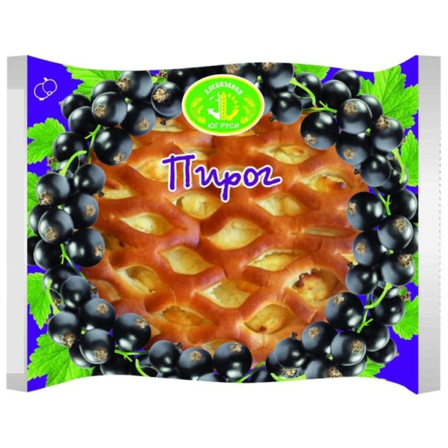 Пирог с черной смородиной торговой марки ХЛЕБОЗАВОД ЮГ РУСИ – ароматное изделие из нежного теста, с большим содержанием сочной натуральной начинки из черной смородины. Поверхность пирога украшена декоративной сеточкой из сдобного теста.