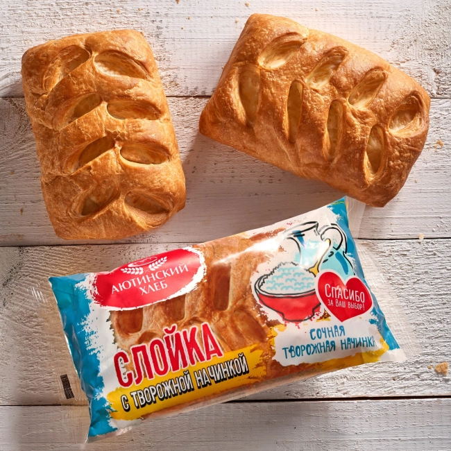 Слойка с творогом - это неповторимое сочетание слоеного теста и сочной творожной начинки. Оригинальный внешний вид слойки и аппетитная золотистая корочка - на самый изысканный вкус! Выгодно отличается за счет большого количества начинки, размера и веса.