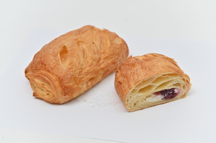 мука пшеничная хлебопекарная высшего сорта ГОСТ, соль, вода питьевая, маргарин для слоения, молоко сухое, крем с ароматом "творог", начинка ванильная, джем вишневый