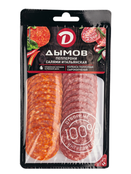 "Пепперони": свинина, шпик, говядина,соль, специи (в т.ч паприка), сахар, усилитель вкуса и аромата (глутамат натрия), антиокислитель (изоаскорбат натрия), ароматизатор, пшеничные волокна,стартовая культура,глюкоза, фиксатор окраски (нитрит натрия). "Салями Итальянская": свинина, шпик, говядина, соль, сахар, специи, усилитель вкуса и аромата (глутамат натрия), антиокислитель (изоаскорбат натрия), краситель (кармин), стартовая культура, глюкоза, фиксатор окраски (нитрит натрия).