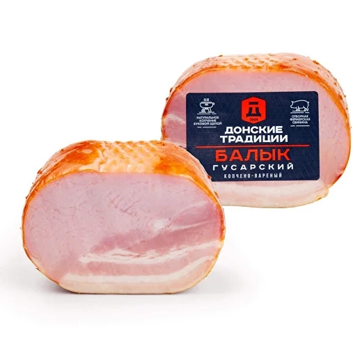 Балык «Гусарский» -деликатесный рулет из двух видов мяса: сочной и нежной свиной грудинки, и тающего во рту свиного карбонада. Нестандартный красивый срез, в меру плотная «кусаемость», доминирующий вкус мяса, подчеркнутый пряностями, делают наш продукт неповторимым и любимым у наших постоянных покупателей. Масса нетто: 270 гр