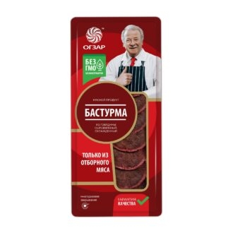 Бастурма – традиционный армянский мясной деликатес, отличается темным цветом и плотной консистенцией. Это вяленая на воздухе прессованная говяжья вырезка, покрытая слоем острой приправы чаман, которая и является главным секретом настоящей Бастурмы.