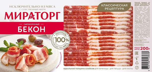 Сырокопченый «Бекон» изготавливается из отборной свиной грудинки собственного производства с добавлением ароматных специй. Тонкие, полупрозрачные ломтики бекона станут идеальной основой любого блюда.