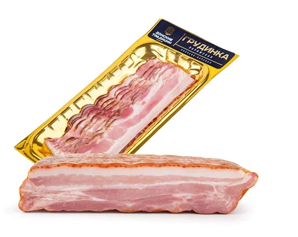 Грудинка «Парижская» вырабатывается из нежнейшей грудо-реберной части свинины по оригинальной рецептуре и особенной фирменной технологии. Гармоничный, нежный мясной вкус, в совокупности с умеренной сочностью и натуральным копчением, превращают нашу грудинку в хит продаж. Порционная нарезка. Масса нетто: 140 гр