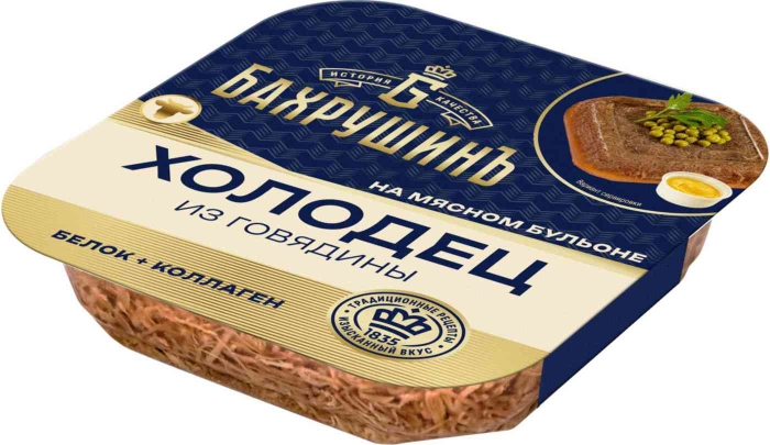 Это натуральная, сытная закуска, приготовленная из долго сваренной говядины, ароматного бульона с чесноком, луком и специями, идеальна с горчицей или хреном, как порционная подача или сытный перекус, сочетает вкус домашнего блюда с удобством готового продукта для праздничного или будничного стола, богатый белком и натуральными желатинизирующими компонентами.