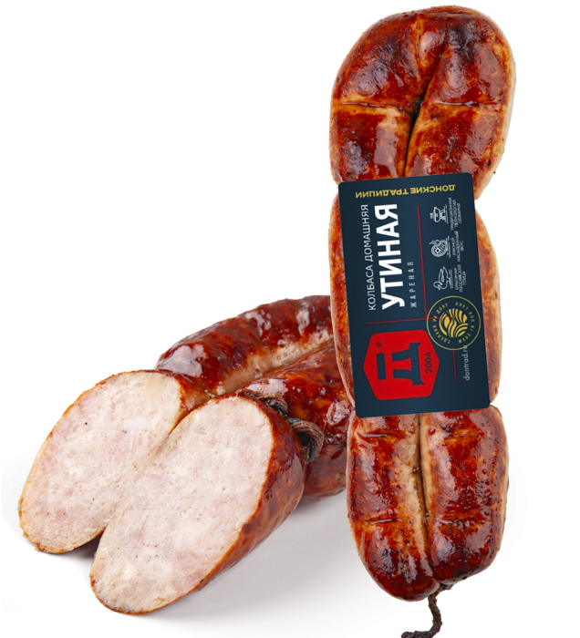 Продукт весовой. Упакован под вакуумом. Жареная колбаса «Домашняя Утиная» сочетает в своей рецептуре охлажденное мясо утки, вследствие чего, получается диетический низкокаллорийный мясной продукт. А традиционное для этого вида запекание в печи, позволяет получить невероятно вкусное лакомство.