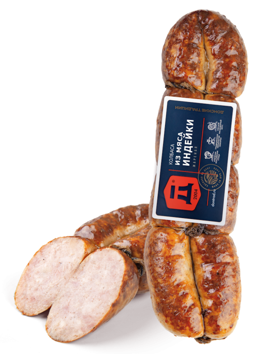 Продукт весовой. Упакован под вакуумом. Жареная колбаса «Домашняя из мяса индейки» сочетает в своей рецептуре охлажденное мясо индейки, вследствие чего, получается диетический низкокаллорийный мясной продукт. А традиционное для этого вида запекание в печи, позволяет получить невероятно вкусное лакомство.