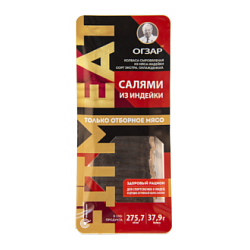 мясо индейки, филе грудки цыплят-бройлеров, филе бедра цыплят-бройлеров, вода питьевая, чеснок, смесь посолочно-нитритная (соль пищевая, фиксатор окраски-нитрит натрия), говяжий коллагеновый белок, молочный белок, соль пищевая, перец черный молотый, комплексная пищевая добавка (стабилизаторы (Е450(i), Е1442), регуляторы кислотности (E451(i), ацетат натрия (i), цитрат натрия (iii)), антиокислитель (аскорбат натрия), загуститель (Е407а)), декстроза, пряности (тмин), экстракты пряностей (перец черн