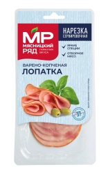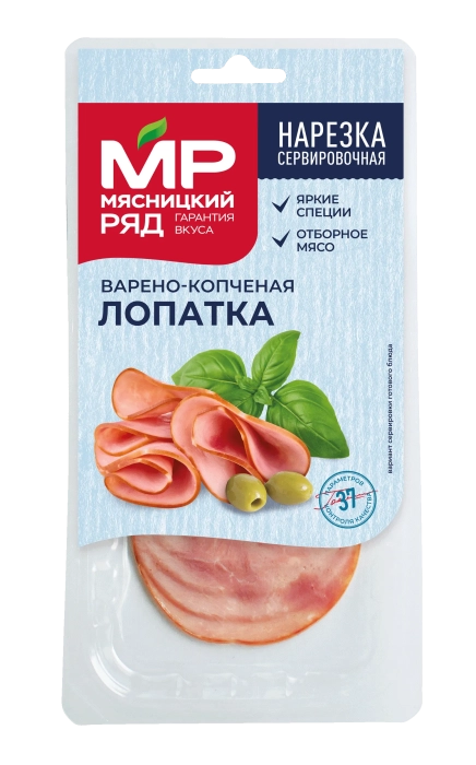 Нежная отборная свинина с прослойкой жира, придающей дополнительную сочность; Продукт коптится на натуральной буковой щепе; Лопатка имеет особенно нежную мраморную и сочную структуру, обладает натуральным мясным ароматом и нежной мягкой корочкой
