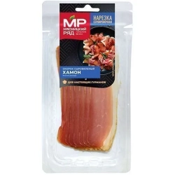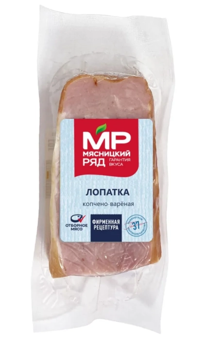 Это нежный сочный деликатес для изготовления которого используются отборные части свиной лопатки с тонким слоем шпика. Смесь благородных специй, используемых при посоле и легкий аромат копчения оттеняют классический мясной вкус. Рекомендуется подавать на стол в виде тонких ломтиков сервировочной нарезки.