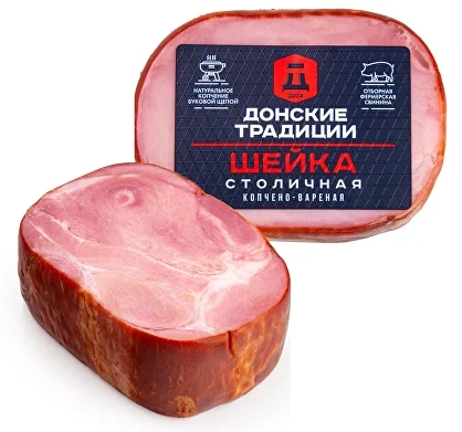 Шейка «Столичная» в полной мере оправдывает свое название. Особенности посола, применяемые на производстве, натуральные пряности, достаточная нотка копчения делают продукт необыкновенно вкусным. Масса нетто: 270 гр