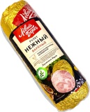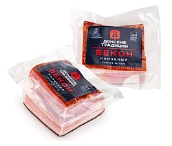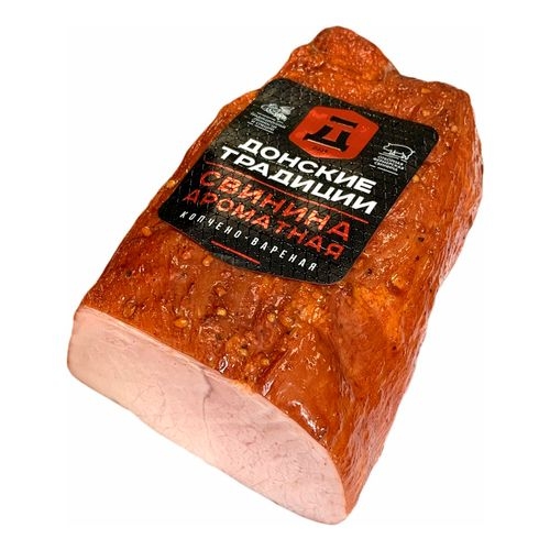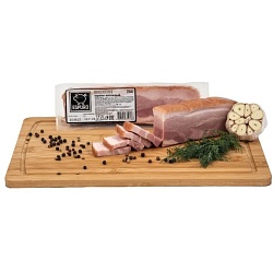 Весовой продукт. Вакуумная упаковка. Анатомической формы кусок, со срезом. Мясной варено-копченый деликатес, без искуственных добавок и ароматизаторов. Для придания пикантности и насыщенности вкуса, сверху приправлен легкой посыпкой натурального красного перца. Удобный вес куска.