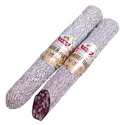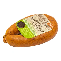 Свинина, шпик, соевый белок, посолочная смесь (соль, фиксатор окраски-нитрит натрия), пшеничные волокна, специи (перец черный, чеснок), сахар, усилитель вкуса и аромата (глутамат натрия), антиокислители (аскорбат натрия, изоаскорбат натрия), ароматизатор, краситель (кармин), мальтодекстрин, стартовые культуры. Продукт может содержать следы орехов, сельдерея, горчицы, глютена.