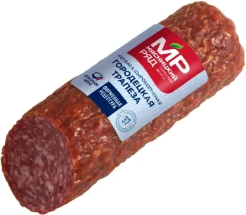 Приготовлен из филе куриных грудок и свиного шпика придающего ей особенную нежность; Имеет красивый четкий рисунок среза, благодаря мелкозернистому шпику и традиционный аромат копчения на натуральных опилках; Обладает характерной для сырокопченой колбасы кислинкой.