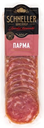 Структурная колбаса со свиным окороком на срезе. Во вкусе также присутствуют ноты Пармской ветчины.