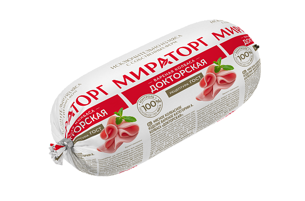 Колбаса "Докторская" приготовлена строго по ГОСТу из мяса собственного производства: свинины и мраморной говядины Black Angus с добавлением молока, яиц и пряного мускатного ореха. Срез аппетитного нежно-розового цвета. Отличается классическим нежным вкусом, знакомым с детства.