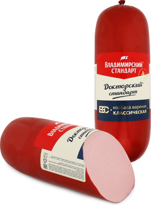 Колбаса вареная ВЛАДИМИРСКИЙ СТАНДАРТ Классическая – это неповторимый, тонкий аромат гармонично сочетающихся специй и пряностей, деликатно оттеняющих насыщенный мясной вкус. Прекрасно сочетается с овощами, подойдет для бутербродов. Хороша на обед, прекрасна с гарниром на ужин, подходит к любому событию и всегда займет достойное место на вашем столе.